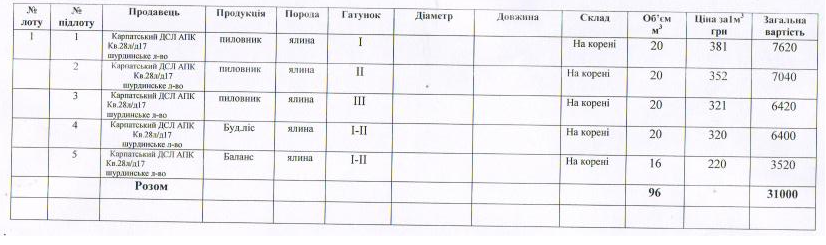 ДП "Сторожинецьке ЛГ" виставляє на електронні, публічні (аукціонні) торги «23» серпня 2013р наступну продукцію:Електронні, публічні (аукціонні) торги проводяться з 14:30 до 15:00