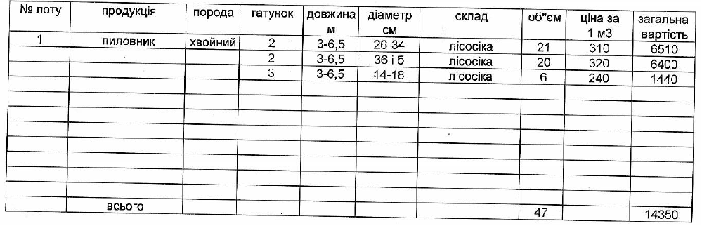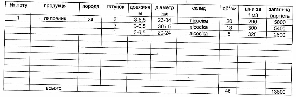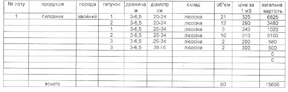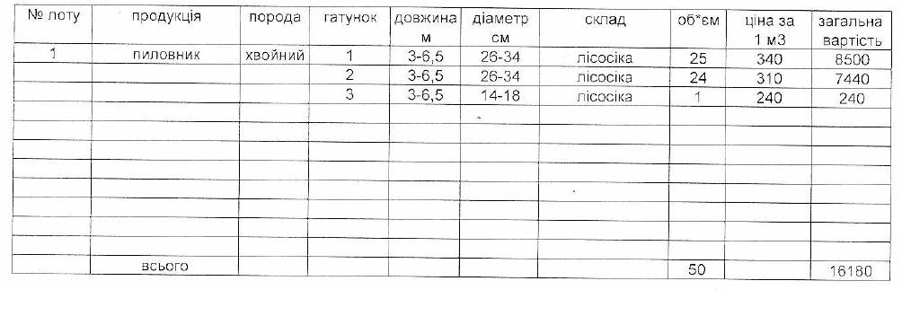 ДП "Сторожинецьке ЛГ" виставляє на електронні, публічні (аукціонні) торги «03» вересня 2013р наступну продукцію:Електронні, публічні (аукціонні) торги проводяться з 14:30 до 15:00
