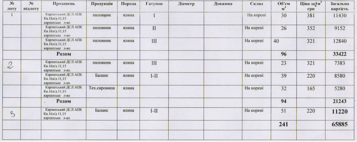 ДП "Сторожинецьке ЛГ" виставляє на електронні, публічні (аукціонні) торги «10» вересня 2013р наступну продукцію:Електронні, публічні (аукціонні) торги проводяться з 14:30 до 15:00