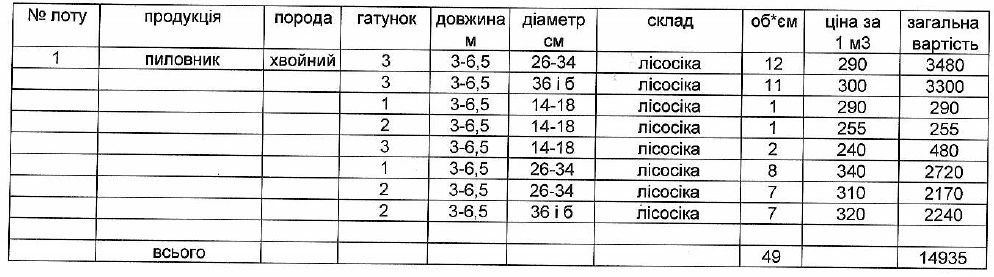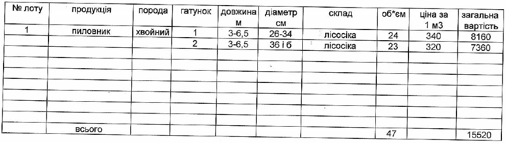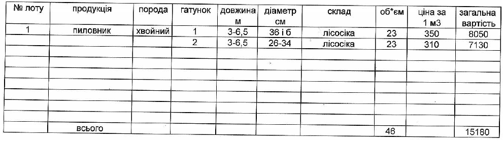 ДП "Чернівецьке ЛГ" виставляє на електронні, публічні (аукціонні) торги «01» жовтня 2013р наступну продукцію:Електронні, публічні (аукціонні) торги проводяться з 14:30 до 15:00