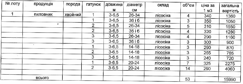 ДП "Чернівецьке ЛГ" виставляє на електронні, публічні (аукціонні) торги «16» жовтня 2013р наступну продукцію:Електронні, публічні (аукціонні) торги проводяться з 14:30 до 15:00