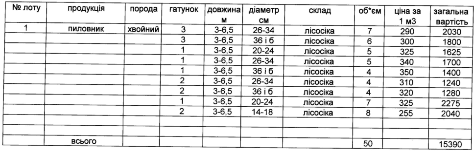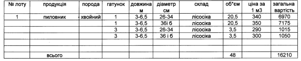 ДП "Чернівецьке ЛГ" виставляє на електронні, публічні (аукціонні) торги «23» жовтня 2013р наступну продукцію:Електронні, публічні (аукціонні) торги проводяться з 14:30 до 15:00