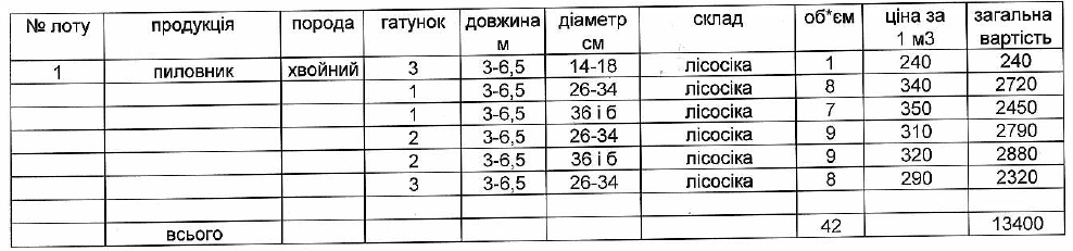 ДП "Чернівецьке ЛГ" виставляє на електронні, публічні (аукціонні) торги «29» жовтня 2013р наступну продукцію:Електронні, публічні (аукціонні) торги проводяться з 14:30 до 15:00