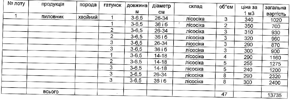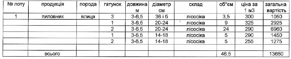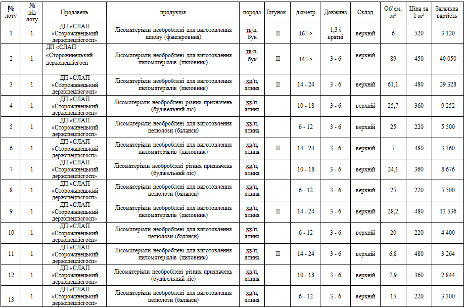 ДП "Сторожинецьке ЛГ" виставляє на електронні, публічні (аукціонні) торги «05» листопада 2013р наступну продукцію:Електронні, публічні (аукціонні) торги проводяться з 14:30 до 15:00