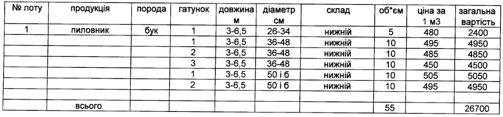 Глибоцький держспецлісгосп АПК виставляє на електронні, публічні (аукціонні) торги «14» листопада 2013р наступну продукцію:Електронні, публічні (аукціонні) торги проводяться з 14:30 до 15:00