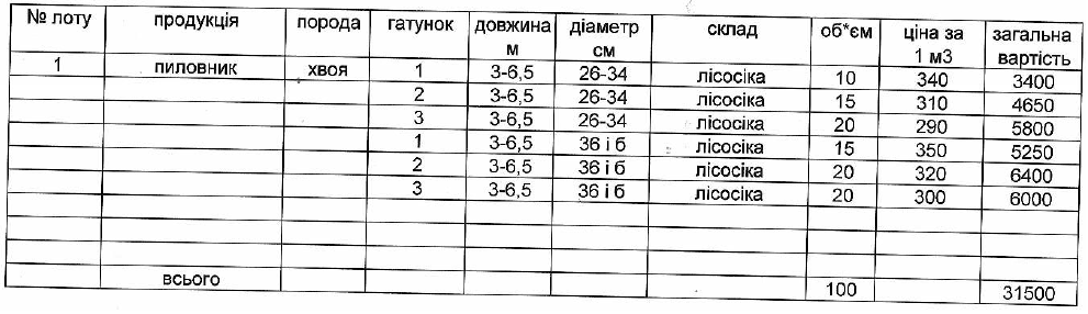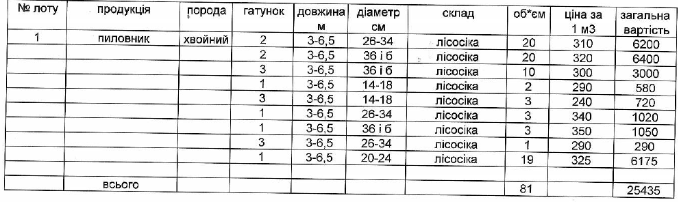 ДП "Сторожинецьке ЛГ" виставляє на електронні, публічні (аукціонні) торги «26» листопада 2013р наступну продукцію:Електронні, публічні (аукціонні) торги проводяться з 14:30 до 15:00