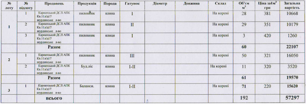 Вижницький держспецлісгосп АПК виставляє на електронні, публічні (аукціонні) торги «27» листопада 2013р наступну продукцію:Електронні, публічні (аукціонні) торги проводяться з 14:30 до 15:00