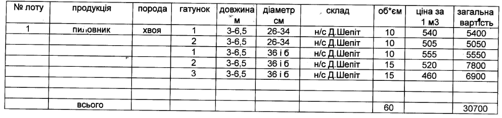 ДП "Чернівецьке ЛГ" виставляє на електронні, публічні (аукціонні) торги «28» листопада 2013р наступну продукцію:Електронні, публічні (аукціонні) торги проводяться з 14:30 до 15:00