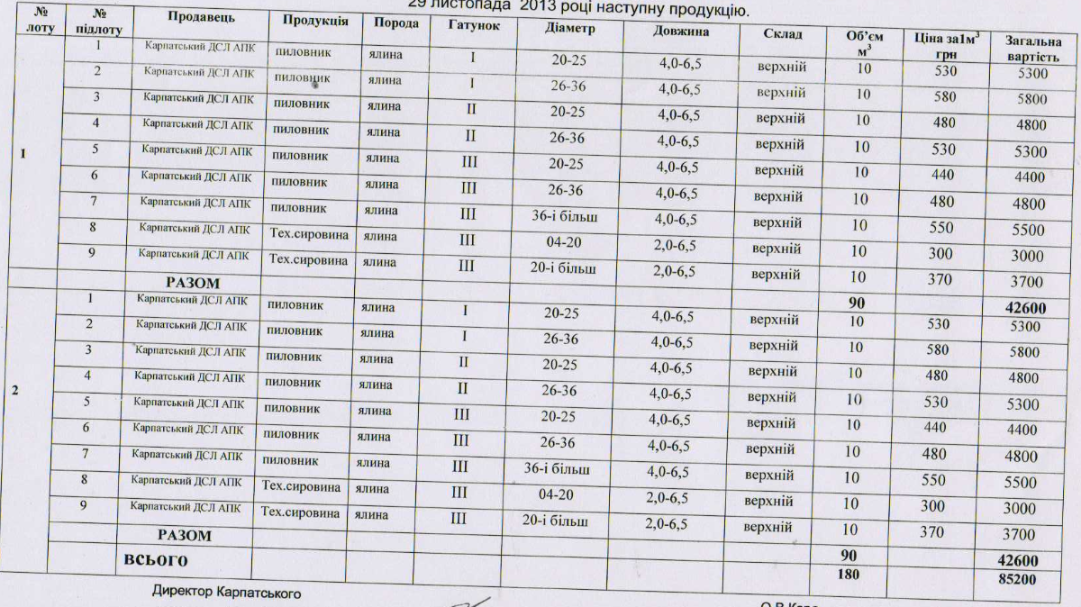 ДП "Сторожинецьке ЛГ" виставляє на електронні, публічні (аукціонні) торги «29» листопада 2013р наступну продукцію:Електронні, публічні (аукціонні) торги проводяться з 14:30 до 15:00