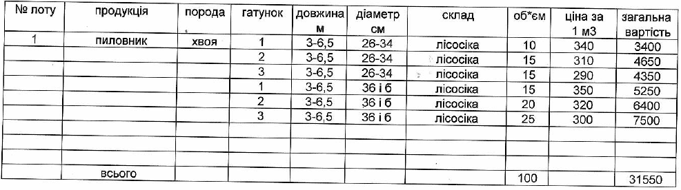 ДП "Сторожинецьке ЛГ" виставляє на електронні, публічні (аукціонні) торги «03» грудня 2013р наступну продукцію:Електронні, публічні (аукціонні) торги проводяться з 14:30 до 15:00