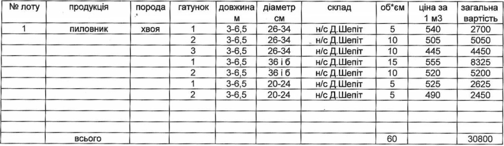 ДП "Берегометське ЛМГ" виставляє на електронні, публічні (аукціонні) торги «06» грудня 2013р наступну продукцію:Електронні, публічні (аукціонні) торги проводяться з 14:30 до 15:00