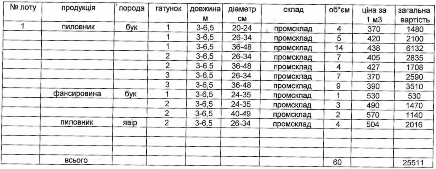 ДП "Сторожинецьке ЛГ" виставляє на електронні, публічні (аукціонні) торги «06» грудня 2013р наступну продукцію:Електронні, публічні (аукціонні) торги проводяться з 14:30 до 15:00