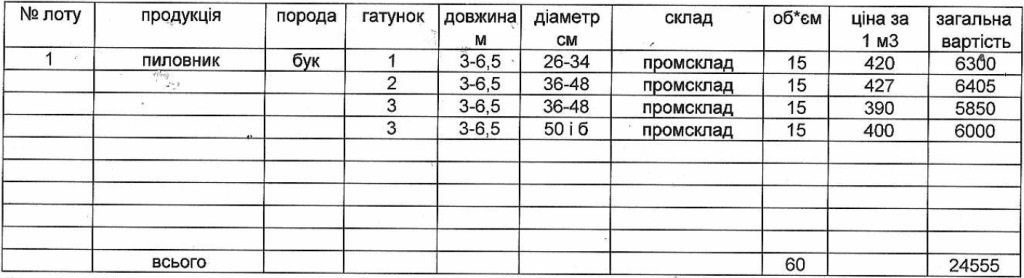 Стартова ціна за 1 кбм |